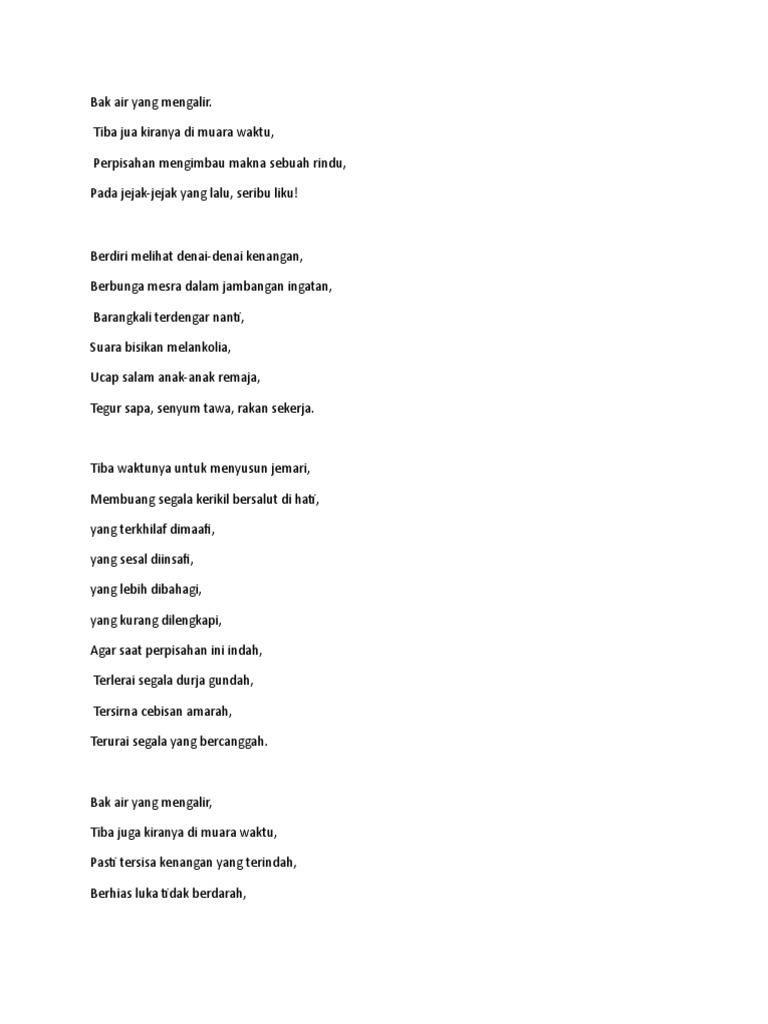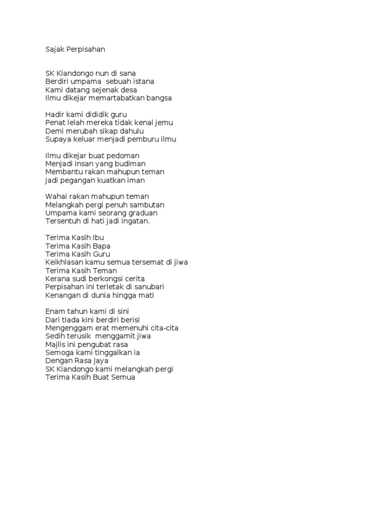 Pantun perpisahan adalah sebuah karya sastra untuk menyampaikan sebuah isi tentang berpisahnya seseorang dengan seorang lainnya. Mana periaman mana manggung kiliran taji mana batu tinggal halaman tinggal kampung tempat mandi tinggal tepian. .perpisahan guru ucapan perpisahan untuk rakan sekerja ucapan selamat bersara doa majlis perpisahan kartu ucapan perpisahan kata bijak perpisahan contoh teks ucapan pengacara majlis pantun perpisahan sahabat. Bertemu dan berpisah adat resam biasa. Belum titik baru koma, menulis puisi selesai sudah.
